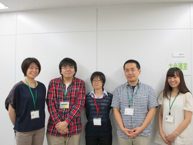 向かって左からトレーナーの小野さん・猪原さん・学生さん・福嶋課長・西川さん。
