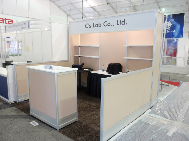 我々のブースは、すでに基本の備品がほぼそろった状態でした。