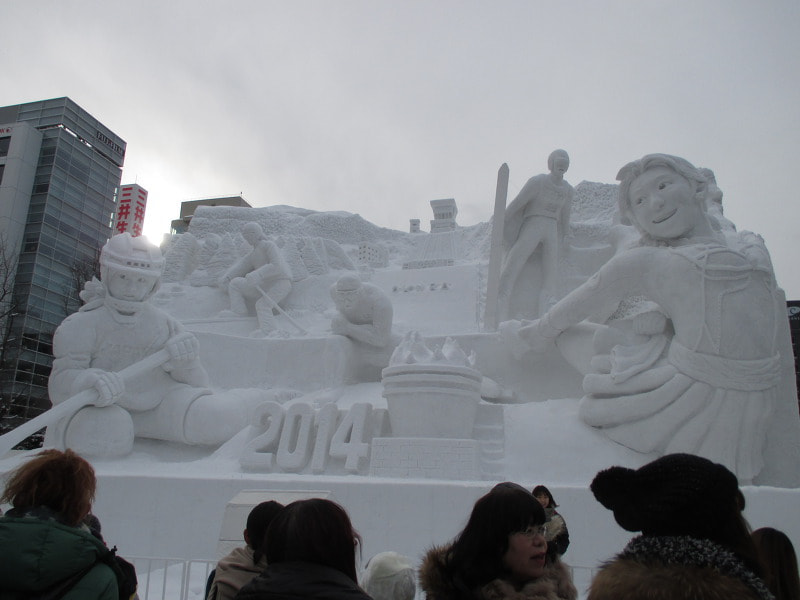 「さっぽろ雪まつり」は大通会場・つどーむ会場・すすきの会場の3つのエリアに分かれていて、シーズ・ラボのすぐそば、大通公園ではたくさんの大雪像があり観光客で賑わっています。飛び交う言葉が、英語、中国語、韓国語などなど。なかなか国際色豊かです。