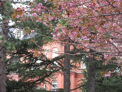 連休明けの今日、大通公園の桜はもう葉桜となり、札幌市街では辛うじて八重咲きのエゾヤマサクラがチラホラ咲いている程度になりました。![]()