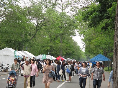 そんな東京ドーム38個分の広い札幌キャンパスを貫くメインストリートに、たくさんの模擬店が並んでいます。その距離1km超え!圧巻です。