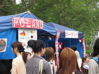 ポーランドの模擬店の前ではこんなかわいい売り子さんが(笑)。