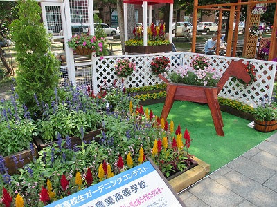 道内の農業高校11校13作品が展示されている西4丁目会場の「ガーデニング甲子園」。色とりどりな色彩が高校生らしい元気が伝わってくる作品になっています。牛がいるガーデンもありましたよ。![]()