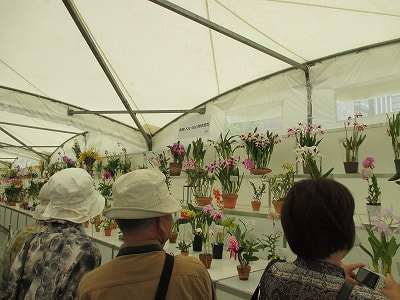 また西5丁目はハンギングバスケットの展示との北海道蘭大賞の出品全作品を展示しています。蘭の愛好家の方が食い入るように作品を見詰めていました。![]()