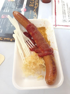 一緒にドイツの国民食ベルリーナ・カリーヴルスを頂きました。カレーとケチャップの風味がビールに合います。