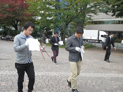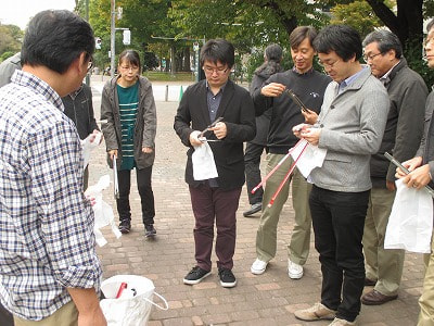 今日は薄日が差すお天気の札幌です。お昼過ぎの気温17度。この時期としては平年並みの気温です。さて、今日は大通公園清掃活動の2日目です。さっそうと皆さん大通公園へ出動!火ばさみとゴミ袋、軍手を装着して、いざ!ごみ拾いです!今日も煙草の吸殻をはじめ、細かいごみを中心に拾いました。明日で最終日となりますが、雨の予報もなく清掃日和に恵まれそうです。明日もがんばります!