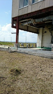 そんな景色の中で目に留まったのが、閖上小学校・中学校。この建物は災害の跡がありありと残っていました。時計も止まっており、まるで災害が起きた時から時間が流れていないようでした。