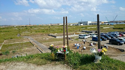 受付担当の方が来るまで、とうもろこしを茹でていたおじさんから災害時の話を聞きました。閖上は人口5500人の町だったらしいのですが、津波により900人の方が亡くなったらしいです。