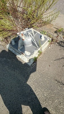 ボランティアの受付場所に向かう途中に見つけた、電柱の根元と思われるものです。
