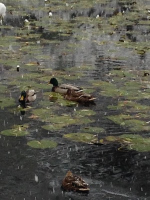 レンガ園庭の鴨が元気に池を泳いでいましたが、見ている分には寒いですね。