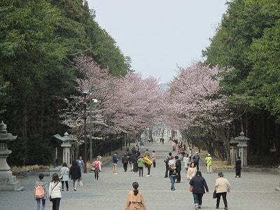 こちらは、鳥居から続く参道の桜。綺麗ですね。