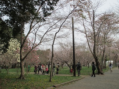 桜だけではなくて、梅も同時にお花見できます。手前が梅で、奥にあるのが桜です。
