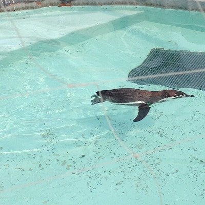 「撮ってください!」と言っているように1匹のペンギンが近づいてきて、すいーっと泳ぎ始めました。