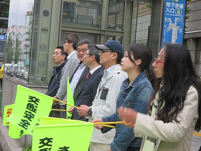 シーズ・ラボがある北一条オフィス町内会が主催のこのイベント。北一条通りのゴミ拾いと、安全運転を呼び掛ける旗振りをしています。