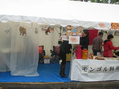 たくさんの模擬店の中、選んだのはこのソーセージ。昔のススキノの呼び込み並みのパワーに負けました(笑)。ベルギー(だったかな?)のソーセージで、日本では3社しか扱ってないレアもののソーセージだそう。とても美味しかったですよ~。暑かったら間違いなくビールが欲しくなる味でした。