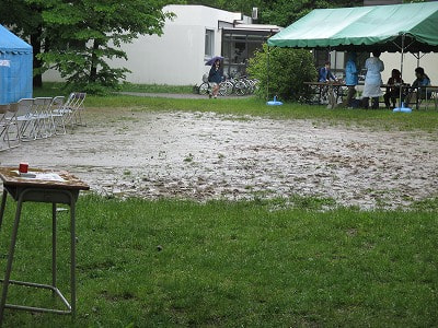 雨なので、ここでも楽器が心配。そして、お客さんの足元も心配。