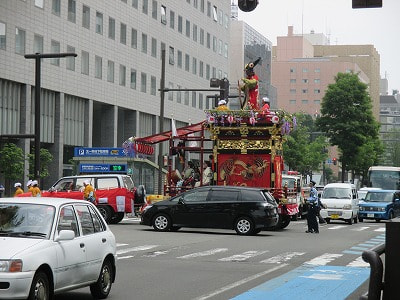とってもにぎやかです。札幌の街中では華やかな山車も出ていました。![]()