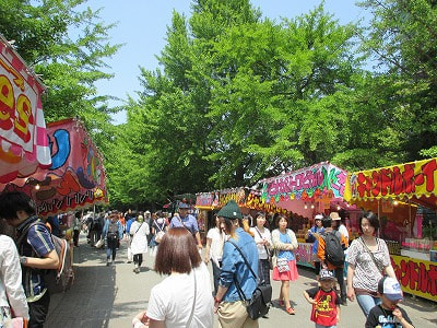 取材日は、奇しくも北海道神宮例祭と重なって、公園は祭り屋台でいっぱい!![]()