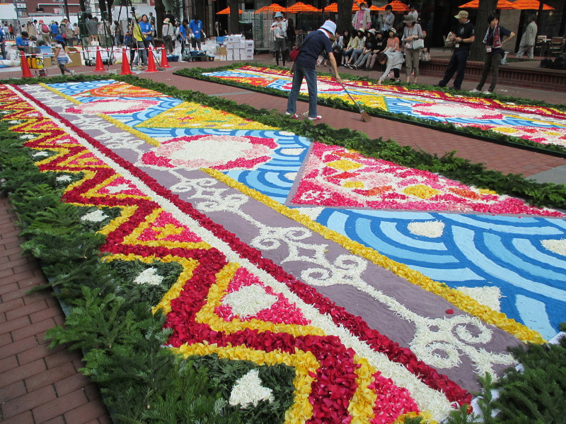 花びらや自然素材を用いて1つの大きな絵を作り上げるこのイベント。本家ベルギーの首都ブリュッセルでは、2年に1度大きな祭典を開催しているそうです。
