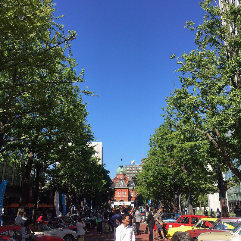 ちょうど、北海道クラッシックカーラリーのオープニングイベント真っ最中。