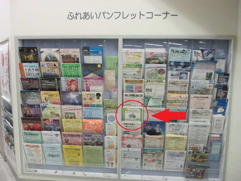 そして、同じく大通駅のふれあいパンフレットコーナーにもチラシを設置させていただきました。