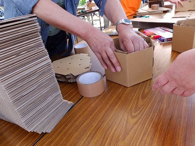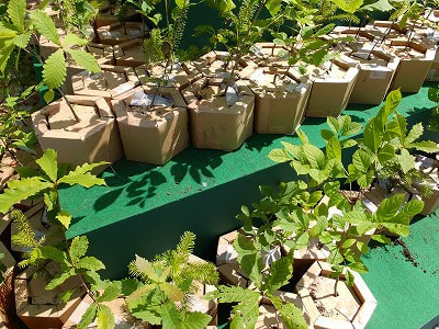 「カミネッコン」という再生段ボールを使ったリサイクルポットを組み立てて、そこに苗木を植えて行きましたよ。![]()