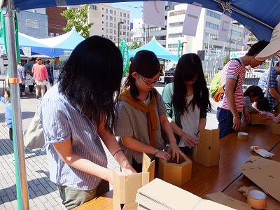 ゆるキャラ達も参加する中、植林用ポット苗木を作製ながら、水や森のはたらきを身近に感じるイベントが札幌水源の森づくり2015です。![]()