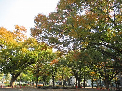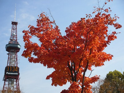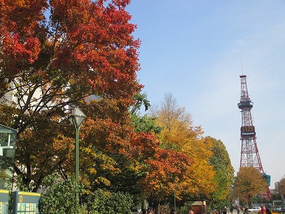 現在、大通公園では紅葉がこんなに綺麗です。