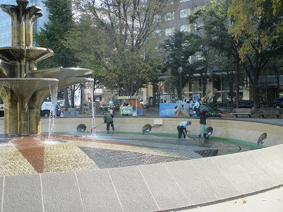 この時期貴重な小春日和を楽しむ人たちもいます。夏の暑い日にはたくさんの子供たちで賑わった噴水も、冬の間はしばらくお休みです。清掃をして、また来春に会いましょう!今月の終わりには、札幌市街地でも初雪のニュースが聞けるかもしれません。