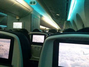 19時発の便なので、ご飯食べたりして時間を潰して、8時間40分の魅惑の旅に突入・・・。長いです。![]()