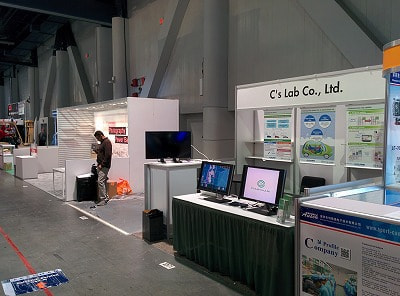 午前中にホテルからモノレールで会場入りしました。展示者向けのバッチを受け取る際に、少々ハプニングが発生しましたが、無事にバッチを受け取りなんとか会場入り!