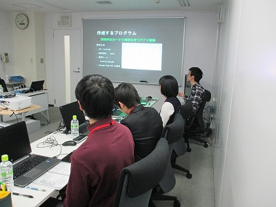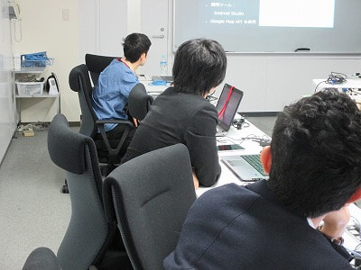 今回のインターンシップはプログラミング未経験者向け「業界研究!プログラミング未経験者のためのプログラミング講座」でしたが、地図の上にアイコンを表示させたり、ルートを引いたり、学生の皆さんは用意していた設問を難なくこなしていました。