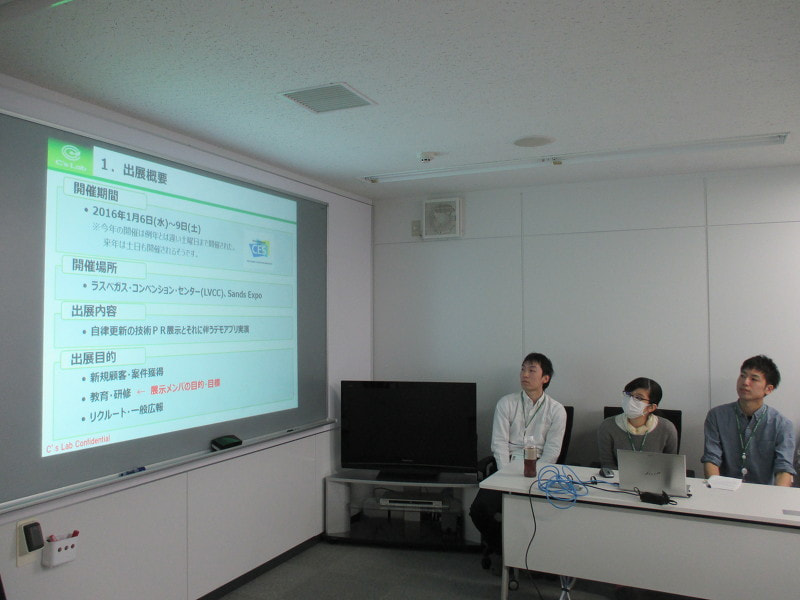 シーズ・ラボは2016年もInternationalCESへ出展しましたが、そのプロジェクトメンバーによる社内向け報告会を行いました。![]()