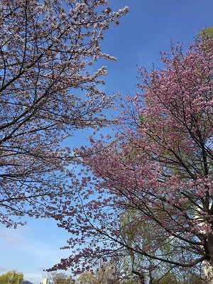 写真は今朝の中島公園の桜の様子です。青空の下、早咲き種は満開となっていました。明日はぐっと寒くなるようですが、5月の連休は暖かい日が続きますのでお花見日和となりそうですね。