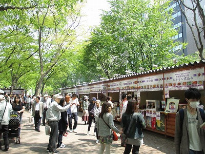 5丁目会場では、アンティークマーケットやライラックやユリの販売など色んなブースがあります。