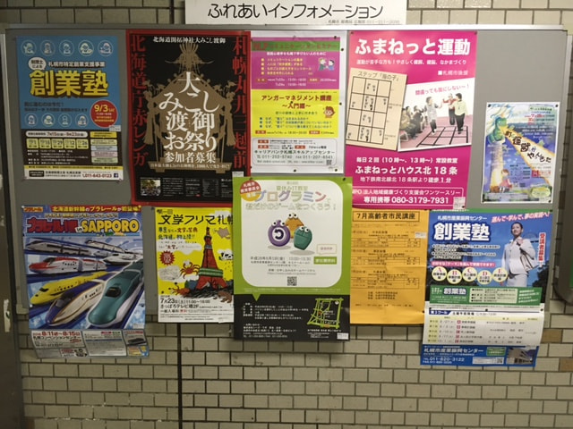 先日、夏休みIT教室のポスターを、さっぽろ市営地下鉄の主要駅に掲示させて頂くことになった旨をお知らせしましたが、7/19より以下の駅の「ふれあいインフォメーション掲示版」で見ることが出来ますよ!