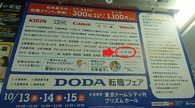 この「DODA転職フェア」の広告が、関東圏のJRや私鉄などの中づり広告・窓上広告で現在展開中!