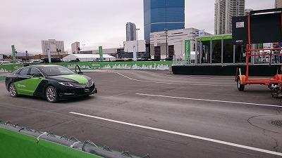 走行中に、[→→→]のような巨大な看板を、道路上に設置すると、車がその方向に曲がるようなデモをしていました。