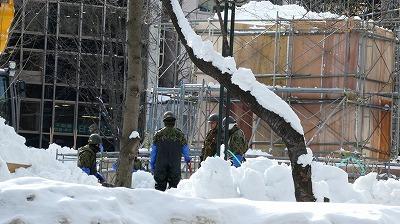 こんな極寒の中、手作業で頑張っていらっしゃる方がいます。それは、来月のさっぽろ雪まつりの準備を進める自衛隊の方々です。![]()