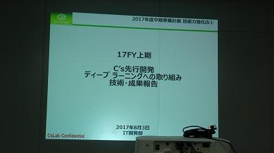 本日は、日々研究開発をしているチームから「ディープラーニングへの取り組み」について報告会がありました。社内でも関心が高いらしく会場1つでは間に合わず、札幌本社2会場と東京オフィスといわきオフィスを繋いでの報告会となりました。