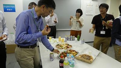 秋の気配が感じられる気候となりましたね。8月終わりの先週、恒例となりました日本語禁止の英会話パーティーがありました。軽食の用意をして、まずはCheers!