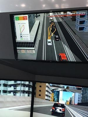レーンや看板といった高精度地図情報も含めた3Dナビの体験をしました。