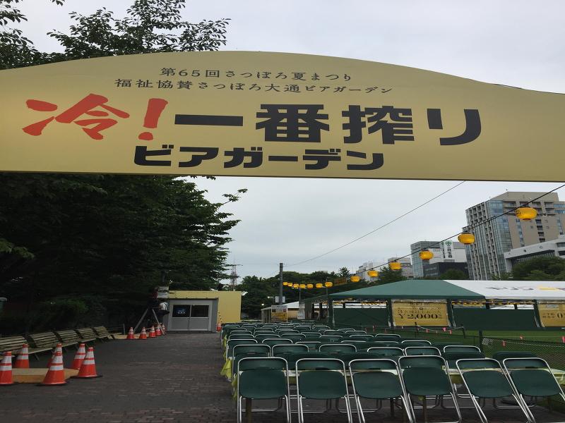 大通公園では各ビールメーカーの飲食ブースが急ピッチで準備中です。