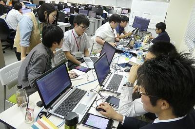 インターンシップ期間は10日間としっかり就業体験型となっています。インターンシップ学生のみなさんで開発チームを組んで、機能別開発から結合テストを経て1つの成果品を目指してもらいます。