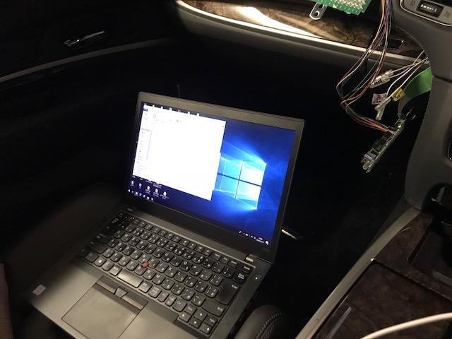 車の中はPCを積んでテストできるようにカスタマイズされています!