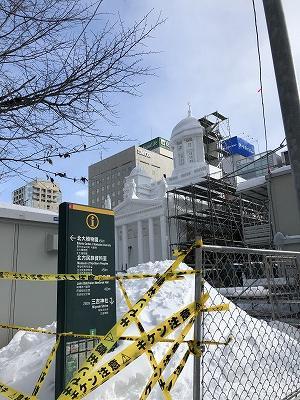 制作途中の足場がある雪像は、地元の人でなければなかなか見られない景色でして・・・。