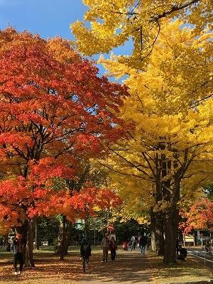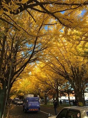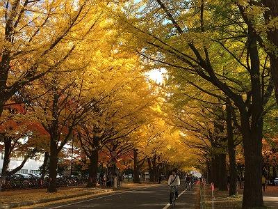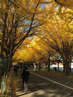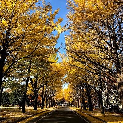 今年も北海道大学内の銀杏並木が綺麗に色づいています。