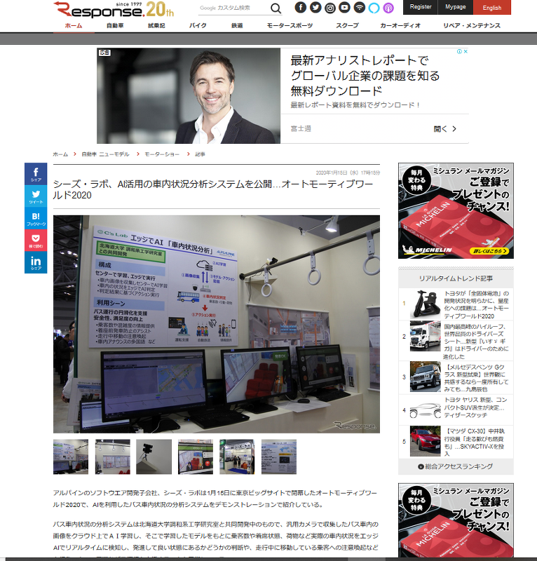 現在開催中のコネクティッド・カーEXPOのシーズ・ラボブースを、レスポンス様の記事で取り上げて頂きました。詳しくはこちらを見てみてね! → https://response.jp/article/2020/01/15/330724.html