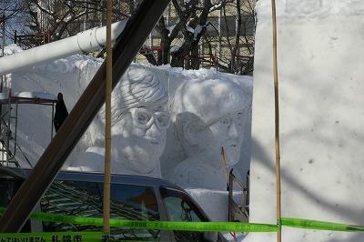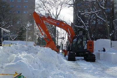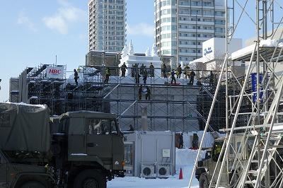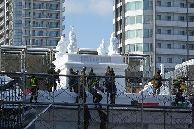 雪像制作現場は爽やかなJ-POPが流れていました。