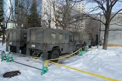 雪像制作も大詰めを迎えているため、自衛隊さんの車台数も増えていました。